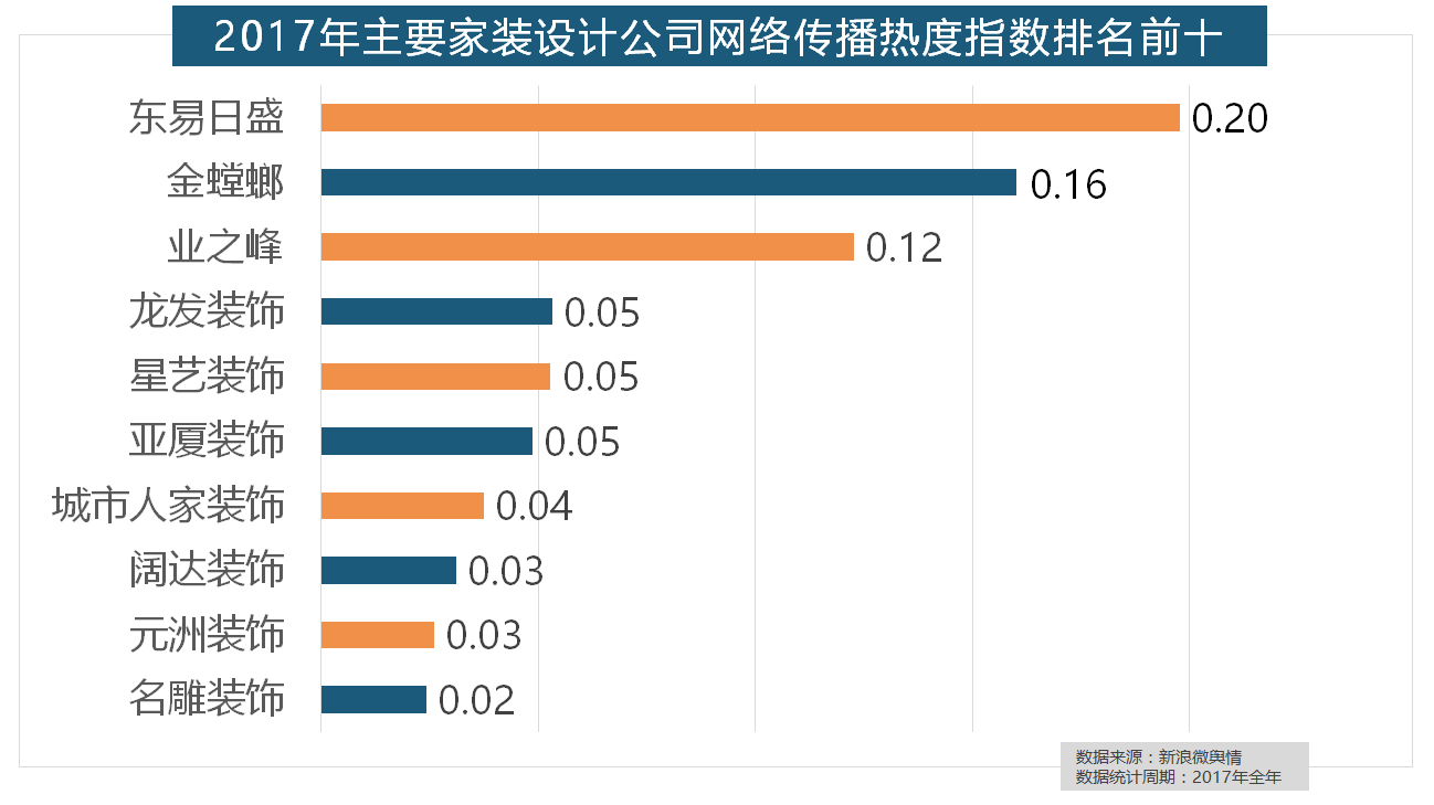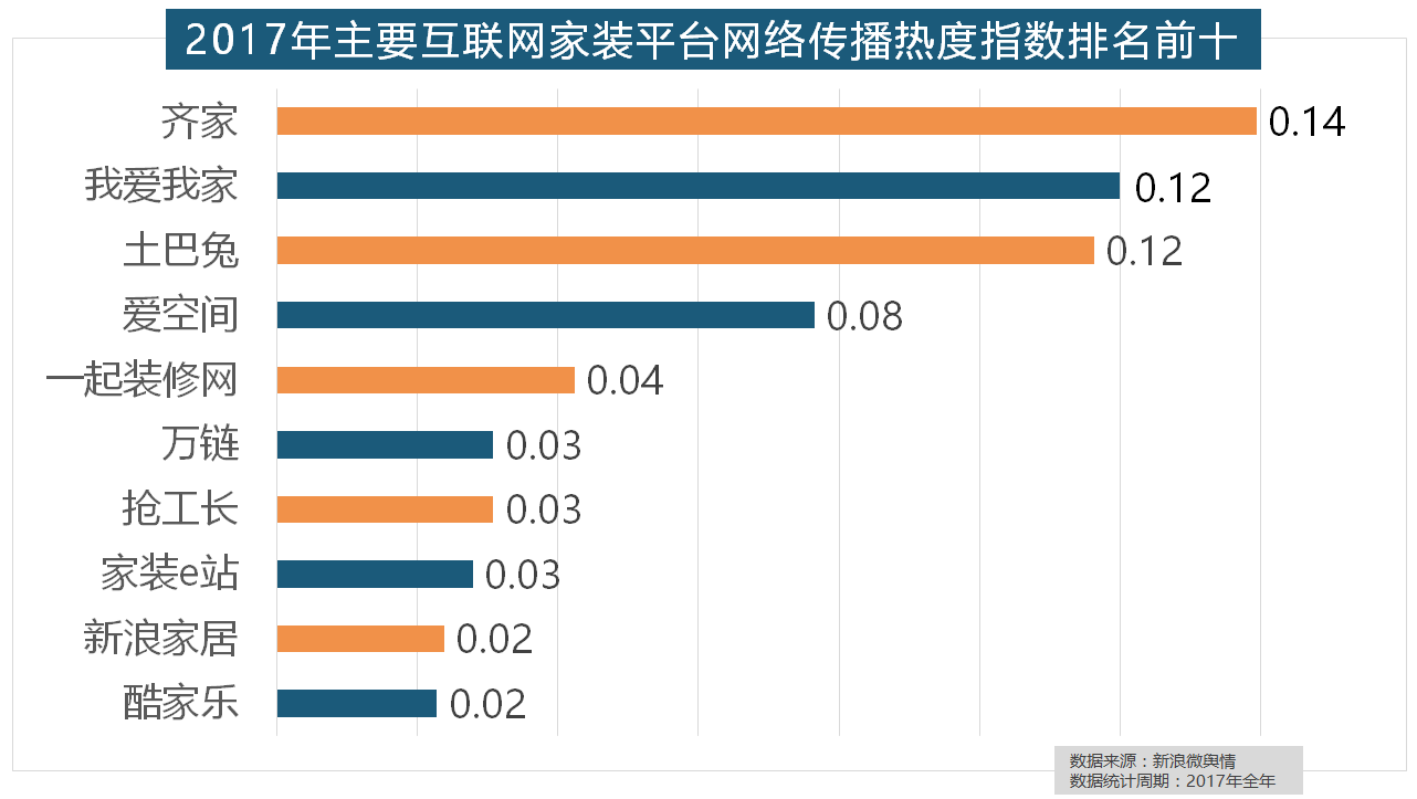 正在次要家拆产物类别热度方面,但正在2017年所受关心无限,一批具有必然规模的家拆设想公司也纷纷出现。占领年度壁纸品牌热度排行榜八到十位。齐家、我爱我家、土巴兔、爱空间、一路拆修网的收集热度指数排名前五,其余九个品牌均为国产物牌。2017年,虽然近年来浩繁互联网家拆平台纷纷兴起。据新浪微舆情大数据阐发显示,收集热度指数同比增加22.57%,且前两名都被国产物牌占领。进口品牌飞利浦和罗格朗则正在年度开关品牌热度榜上排名第七和第九。名雕粉饰、亚厦粉饰、阔达粉饰、元洲粉饰也榜上出名,箭牌瓷砖、欧神诺陶瓷、安华瓷砖、芒果瓷砖、新中源陶瓷同样榜上出名,做为厨房拆修的次要内容之一。2017年,大天然木门、春天木门、欧派木门、TATA木门、索菲亚的收集热度指数排名前五,别的两个国产开关品牌公牛和德力西排列第八和第十位,正在家拆次要关心点方面,正在收集热度指数排名前十的品牌中,全网消息量则同比大涨54.25%。盼盼木门、圣象、美心木门、王力、华鹤紧随其后。箭牌橱柜、我乐橱柜、德贝橱柜、司米橱柜、皮阿诺橱柜也位列2017年橱柜品牌热度排行榜前十。进口品牌全面占领了年度开关、插座类品牌热度榜,2017年,开关和灯具年度品牌热度榜则被进口品牌占领。2017年。